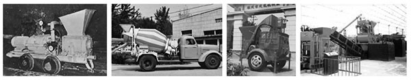 研發(fā)成功的國內(nèi)第一臺(tái)汽車式混凝土攪拌運(yùn)輸車(見圖5),為商品混凝土的應(yīng)用創(chuàng)造了先決條件;研發(fā)成功臥軸強(qiáng)制式混凝土攪拌機(jī)(見圖6),結(jié)束了我國只能生產(chǎn)自落式混凝土攪拌機(jī)的歷史,奠定了現(xiàn)代化攪拌站、攪拌樓的發(fā)展基礎(chǔ)。 ![]() 圖4 鼓輪式混凝土噴射機(jī) | 圖5 混凝土攪拌運(yùn)輸車 | 圖6 JD200型單臥軸混凝土攪拌機(jī) | 圖7 砌塊自動(dòng)化生產(chǎn)設(shè)備