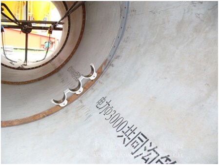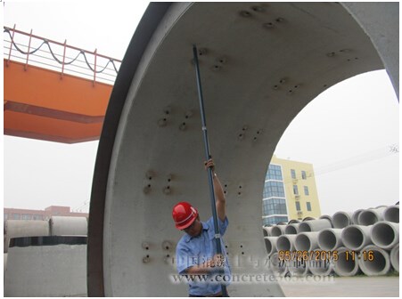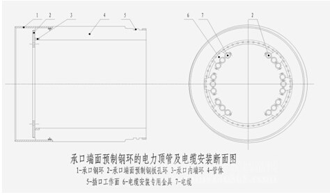 ◆首先,要保證鋼板環(huán)制作尺寸準確,環(huán)內(nèi)徑與管子的內(nèi)徑尺寸一致。 ◆裝模時要確保鋼板環(huán)安裝準確,有兩種較便于操作的方法: 其一,采用附加筋輔助定位,裝下部環(huán)時,在環(huán)外預先焊上數(shù)根縱向鋼筋,鋼筋長度以環(huán)邊到底托盤平面為準,將環(huán)套進內(nèi)模,鋼筋端頭支撐在底盤上,再套進上部環(huán),上部環(huán)可依托下環(huán)為基準測量尺寸焊輔助筋定位,也可焊輔助筋向上彎腳掛在內(nèi)模上,然后將內(nèi)模安裝到位,裝鋼筋籠,兩只鋼環(huán)與鋼筋籠焊接牢固,再按正常工序制管即可。 其二,定位銷定位,在鋼模的內(nèi)模上鉆孔,裝上定位銷,依托定位銷托承鋼板環(huán),待鋼板環(huán)與鋼筋籠焊接牢固后,將定位銷退后到與內(nèi)模的外壁平整處,再按正常工序制管,這樣操作較前一方案簡便,可保證鋼板環(huán)與管內(nèi)壁有較好的平整度。 第二種形式:端面預埋環(huán)形帶孔鋼板。 這種在電力電纜隧道內(nèi)安裝電纜的方法是由湖北電力勘測設計院于2007年立項首創(chuàng)的電纜蛇形布設項目確定的,它的關鍵是在電纜隧道的管節(jié)的承口端面預埋圓周帶孔的環(huán)形鋼板,在地下隧道內(nèi)安裝電纜時,用專用金屬夾具裝配在鋼環(huán)上,然后將電纜夾緊,這種方法安裝電纜很簡便、快捷,也可更有效利用隧道的空間。 ![]() ![]()
