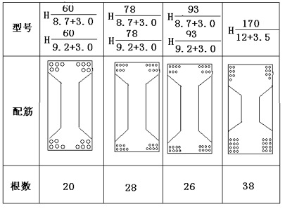 1.1 所用預(yù)應(yīng)主筋應(yīng)符合GB/T5223《預(yù)應(yīng)力砼用鋼絲》。 1.2 在編組及張拉時應(yīng)保證預(yù)應(yīng)力鋼絲受力均勻。 1.3 主筋下料長度誤差不大于2.0mm,鐓頭直徑應(yīng)在Ф7.0~Ф7.5之間,鐓頭高度為4.0~4.5mm。 1.4 各種型號支柱下料長度、根數(shù)、張拉值。