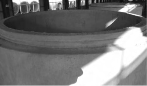 (3)改進(jìn)效果:經(jīng)過對(duì)混凝土配合比、布料速度、啟振時(shí)機(jī)、振動(dòng)頻率、振動(dòng)時(shí)間、碾壓時(shí)間及碾壓力的調(diào)整和規(guī)范,產(chǎn)品成型脫模后的管體外觀質(zhì)量大為提高,基本消除了管壁表面蜂窩、麻面等缺陷,如圖2所示。 ![]() 圖2 改進(jìn)后的管壁外觀照片